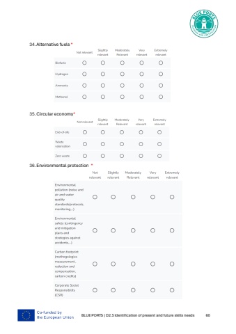 BLUE PORTS | D2.5 Identification of present and future skills needs 6034.Alternative fuels * 35.Circular economy*36.Environmental protection *
